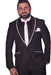 Black and White Trim Collar Shawl Lapel Tuxedo With Satin Trim Vested Suit