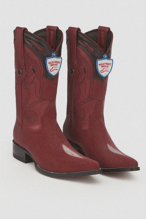 The Bota de Mantarraya Original Horma Aladino from Wild West is a true masterpiece in exotic Western footwear. Made from authentic stingray leather (mantarraya), these boots feature the distinctive Aladino shape, known for its slightly pointed toe, slim profile, and elegant curve a stylish evolution from traditional cowboy boots. The shimmering, pebbled texture of stingray leather and the iconic center "eye" pattern give these boots a bold, high-end finish.