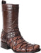 These boots are crafted from premium exotic leather, featuring a striking textured scale pattern on the foot that gives them a rugged, luxurious, and distinctly Western-inspired look. The upper shaft is made from smooth, high-quality leather, offering durability and a rich, natural sheen. Decorative stitching and side pull loops add classic cowboy-boot character, while the squared toe and low stacked heel provide comfort for extended wear. The unique scale finish suggests a handcrafted, artisanal construction—ideal for someone who wants footwear that stands out with personality and craftsmanship.