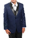 Boys 3 Piece Dark Navy/Black Satin Shawl Collar Floral Pattern Tuxedo Set With Free Matching Shirt & Bow Tie