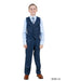 This five-piece set includes everything needed for a sophisticated look—jacket, vest with a satin finish, matching flat-front pants, a crisp dress shirt, and a neat tie. The jacket’s design offers a refined silhouette with side pockets and interior French facing, while the vest’s adjustable back strap ensures a tailored fit that moves with him. The flat-front pants make dressing effortless and sleek.