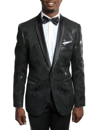 Cheap Priced Blazer Jacket For Men Online Silver Slim Fit Two Toned Black Lapel Shawl Collar Dinner Jacket Looking!