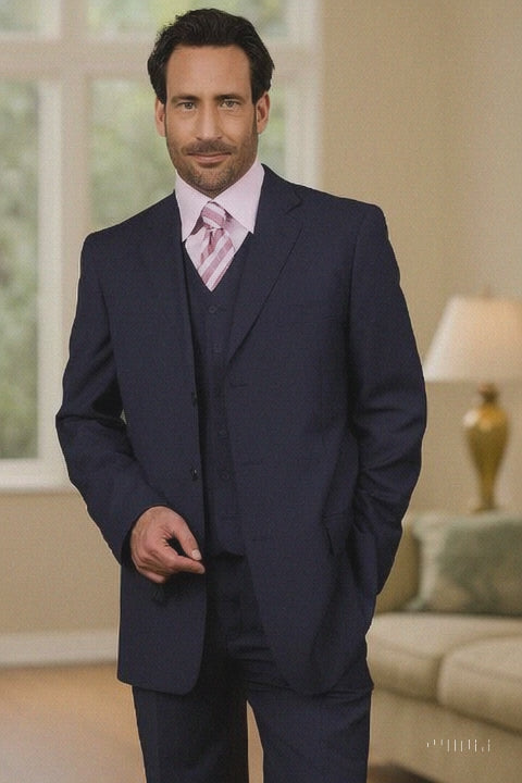 Classic Fit - Navy Suit - Three Button Vested Suit - Athletic Fit
