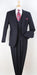 Classic Wool Fabric Fit - Pleated Pants - Peak Lapel With Double Breasted Vest - Athletic Fit Dark Navy with Blue Stripe Mens Suit