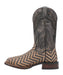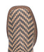11″ Shaft; Leather Boot; Bone And Black Basketweave Vamp Detailing; Distressed Black Upper; Leather Pull Tabs For Easy On; Leather Lining; Removable Antibacterial And Antifungal Soft Strike Orthotic Insole; TPU And Leather Outsole; 1″ Stockman Heel; Broad Square Toe; Style #DP4927
