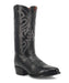 13″ Shaft; Black Leather Boot; Leather Pull Tabs For Easy On; Leather Lining; Removable Antibacterial And Antifungal Soft Stroke Orthotic Insole; Leather Outsole; 1 1/4″ Cowboy Heel; Round Toe; Color: Black; Style #DP2110R