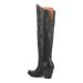 The Jilted boot is a show stopper with an over-the-knee, 20 height. Handcrafted with soft, distressed leather and western stitching throughout. It's dressed up with a high fashion heel, snip toe and leather outsole. An inside zipper makes it easy to step in and go.