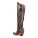 The Dan Post Kommotion is tall (20"), elegant and super sexy. Handcrafted of chocolate leather with contrasting multi-row fancy stitched upper. The high fashion heel make your legs go on forever. Inside zipper for better fit. Get rocking in your Kommotion boots and find the party!
