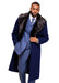 Dark Navy Blue Overcoat ~ Long Men's Dress Topcoat - Winter coat With Fur Collar in and Fabric