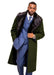 Dark Olive Overcoat ~ Long Men's Dress Topcoat - Winter coat With Fur Collar in and Fabric