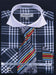 French Cuff Set White Collar Two Toned Contrast Deep Checker Navy Plaid ~ Windowpane Men's Dress Shirt