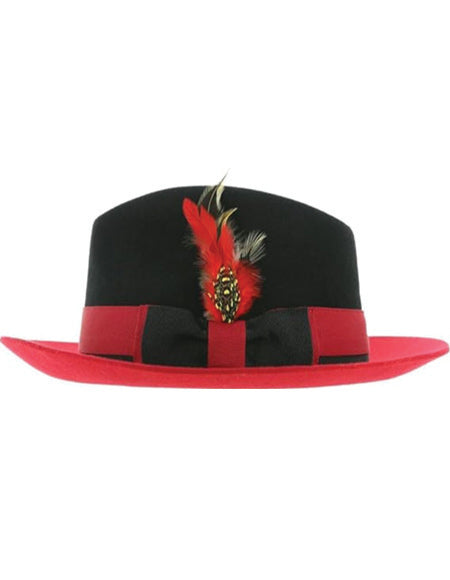 Gangster 100% Austrailian Wool Crushable Mens Fedora Hat - Removable Feather Gangster Black-Red Mens Fedora Hat