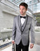 Mens Vested Wool Tuxedo in Shawl Lapel with Satin Trim in Grey & Black