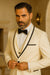 Mens Vested Wool Tuxedo in Shawl Lapel with Satin Trim in Ivory & Black