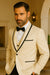The ivory jacket exudes sophistication, featuring a sleek black satin shawl lapel and matching satin-trimmed pockets for a sharp contrast that draws the eye. Its three-piece vested design provides versatility — wear it complete for an elevated formal look or remove the vest for a streamlined style. The black flat-front trousers are precision-tailored for a slim, contemporary silhouette that balances comfort with a polished appearance.