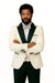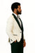 Hilton White and Black Paisley Peak Lapel Tuxedo Jacket with Matching Shawl Vest and Wool Pants – Includes Bow Tie
