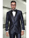 Indigo ~ Bright Blue Men's Two Toned Vested 2 Buttons Suit With Black Lapel Italian Tuxedo Looking