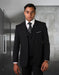 Mens 2 Button Slim Fit Wool Suit With Double Breasted Vest in Black
