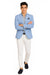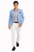 The subtle light blue hue makes this blazer easy to pair with neutral or contrasting tones—team it with crisp white trousers for a coastal vibe, navy chinos for business-casual finesse, or beige linen pants for resort-ready sophistication. For special occasions, it pairs beautifully with a white dress shirt and pocket square, effortlessly enhancing your overall presence. Whether you’re attending a destination wedding, a rooftop brunch, or a casual meeting, this blazer adds the right touch of relaxed luxury to your look.