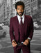 Mens 2 Button Skinny Vested Wool Suit in Burgundy