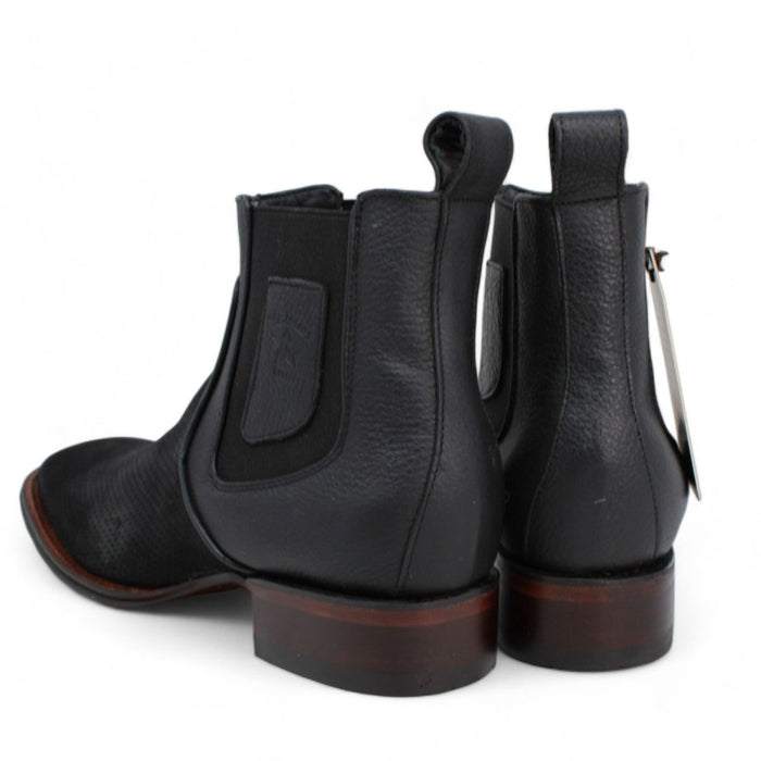 Los Altos Men's Wide Square Toe Suede Leather Short Boots - Black 82BV6305