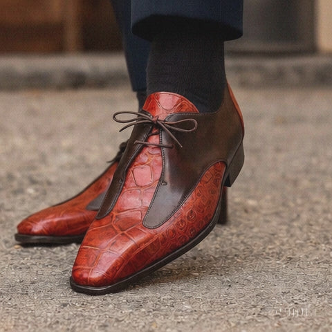 Expertly constructed from genuine alligator leather and premium Italian calfskin, the Anzio Derby showcases an exquisite blend of artisanal craftsmanship and contemporary styling. The unique cognac hue delivers warmth and versatility, complemented by the deep patina and hand-burnished tones that reflect the shoe’s handmade quality.
