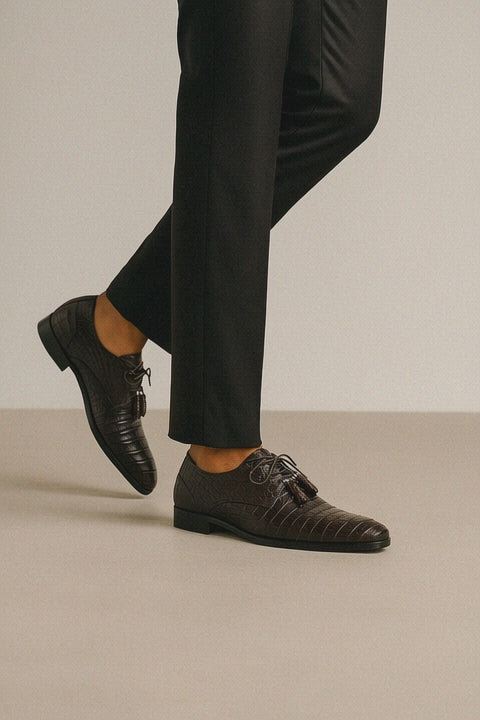 Marco Di Milano shoes represent the pinnacle of Italian-inspired craftsmanship blended with exotic elegance. Whether you're walking into a boardroom or a black-tie gala, the Lacio Brown Caiman Crocodile Derby ensures you do so with unmatched sophistication and confidence.