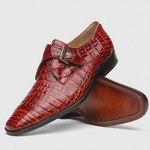 Marco Di Milano Rovigo Rustic Cognac Exotic Crocodile Skin Single Monk-strap Loafers