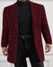Men Houndstooth Lapel Collar Single Breasted Tweed Overcoat Black and Burgundy