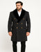 Men’s Black Double-Breasted Overcoat with Faux Fur Collar and Gold Buttons