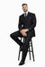Men’s Black Double Breasted Wool Suit with Metal Buckle Closure