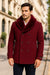 Men’s Burgundy Double-Breasted Overcoat with Faux Fur Shawl Collar – Alberto Nardoni Signature