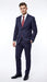Upgrade your formal wardrobe with thisNavy Blue and Burgundy Checkered Two-Piece Suit Plaid Windowpane â Flat Front Pants or Pleated Wide Leg Pants - 100% Wool  designed to deliver timeless style with a refined modern look. Featuring a deep navy blue base accented with subtle red check patterns, this suit offers a sophisticated appearance suitable for both professional and special occasions.