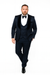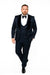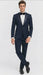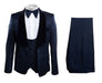 Men’s Navy Blue Jacquard Tuxedo with Black Velvet Shawl Lapel – 3 Piece Formal Suit with Bow Tie