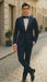 Men’s Navy Blue Tuxedo with Satin Peak Lapel With Matching Color Lapel Sateen – Formal 2 Piece Suit