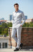 Design: Long sleeve shirt with full button-down front and flat-front pants