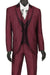 Mens 1 Button Trim Peak Vested Tuxedo Suit in Burgundy