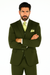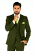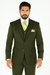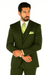 Mens 2 Button Vested Basic Wool Feel Suit in Olive