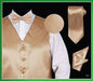 Men's 4 Piece Dress Tuxedo Wedding Vest ~ Waistcoat ~ Waist coat Set (Bow Tie, Neck Tie, Hanky) - Satin Tan ~ Beige - Men's Neck Ties - Mens Dress Tie - Trendy Mens Ties