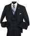 Men's Black 2 Button Side Vent Peak Lapel V-Neck Vested Suit