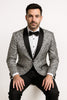 Men's Black and Silver Gray Sequin Tuxedo Blazer With Black Pants