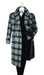· Color: Black and white with a bold windowpane plaid pattern