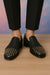 Pair with black skinny trousers or a slim-fit tuxedo to highlight the detailed design. Keep accessories minimal to let the shoes make the statement.