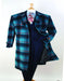 - Color: Vibrant navy and teal blue plaid with red accents