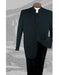 Men's Button Closure Poly Gabardine Pleated Pants Black 2 Piece Suit