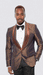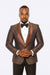 Mens Brown Paisley Tuxedo with Brown Satin Lapel and Black Pants β Formal Wedding Suit with Chain Brooch