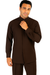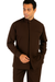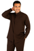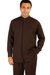 - Chocolate Brown color featuring High Mandarin "No Collar Walking Set" Walking Set with 1 Besom Pocket and Matching Solid Pleated Pants.