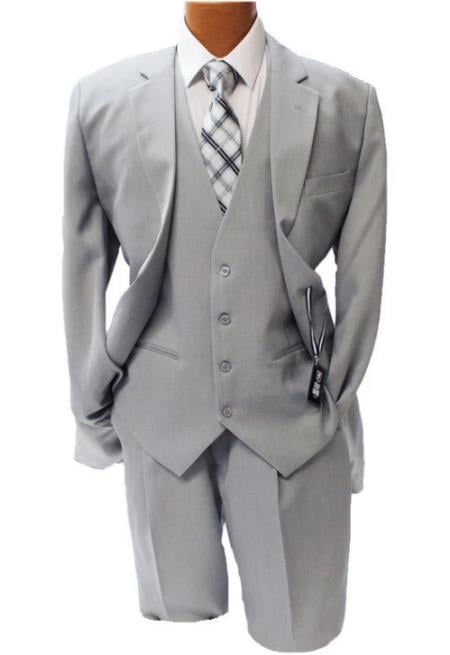 • This bold looking Indigo color slim fit suit features a 3 piece look with it's low scooped style vest and jacket with side vents and flat front style pants that are unfinished and ready for hemming