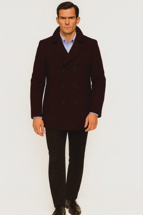 Men's Dark Brown Wool Fabric Big and Tall Men's Peacoat