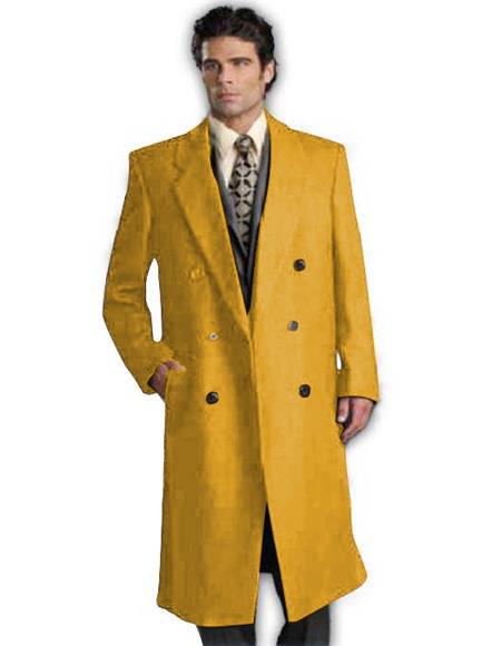 Mens Double Breasted Full Length Wool Coat Red Overcoat